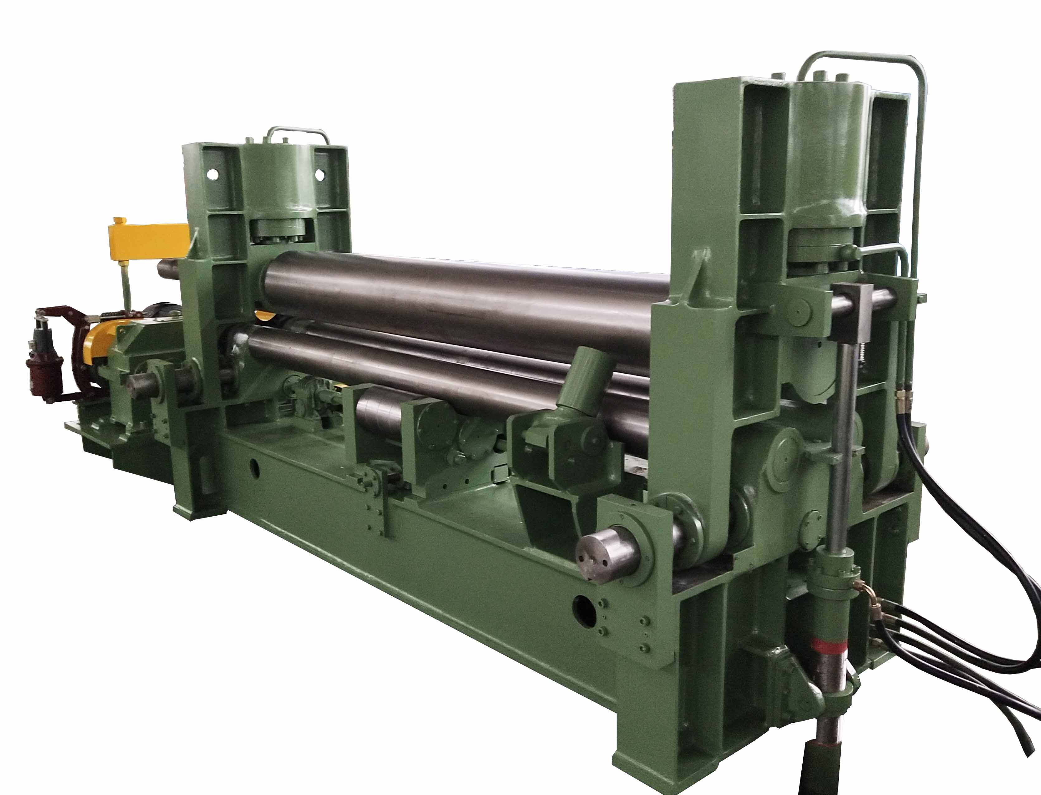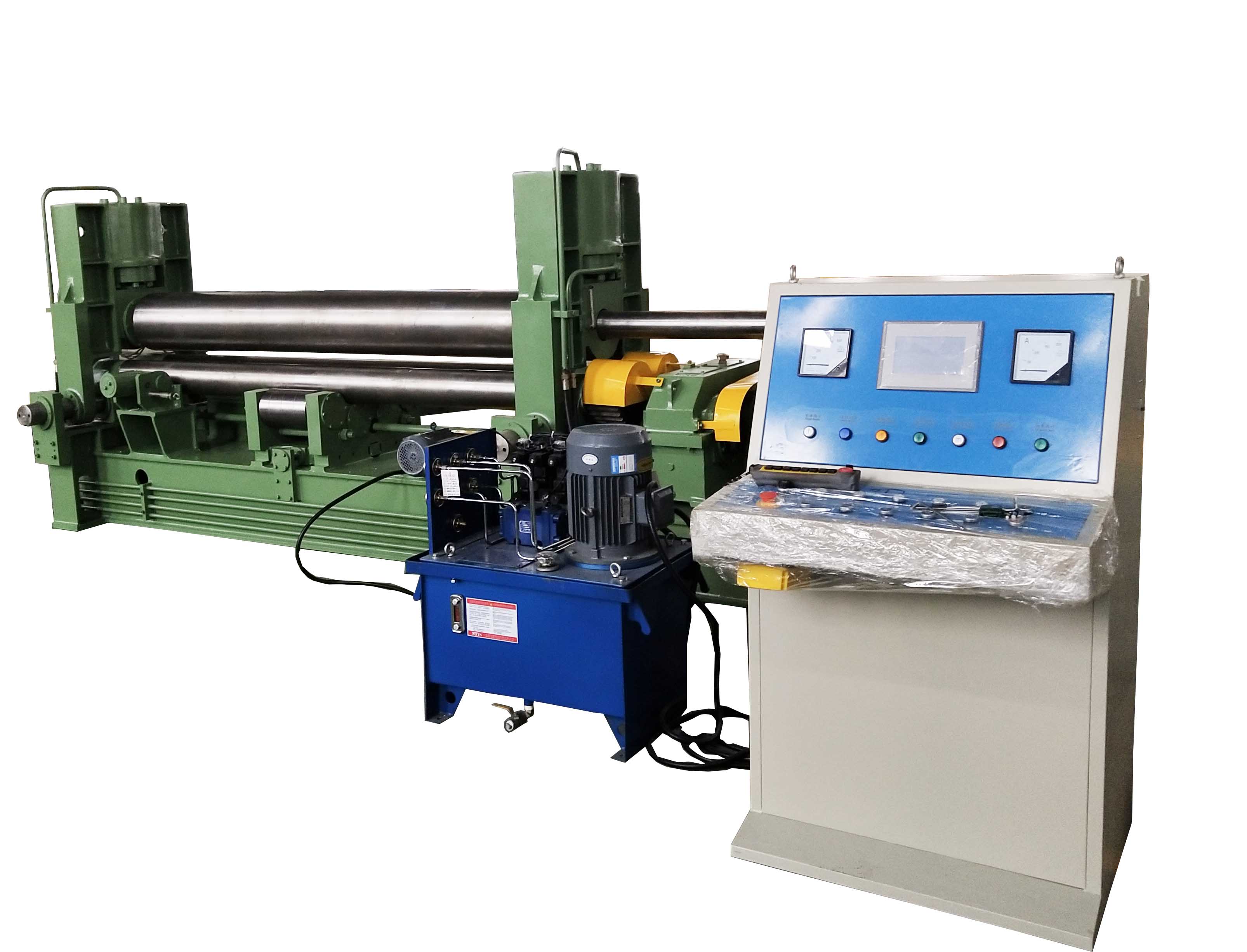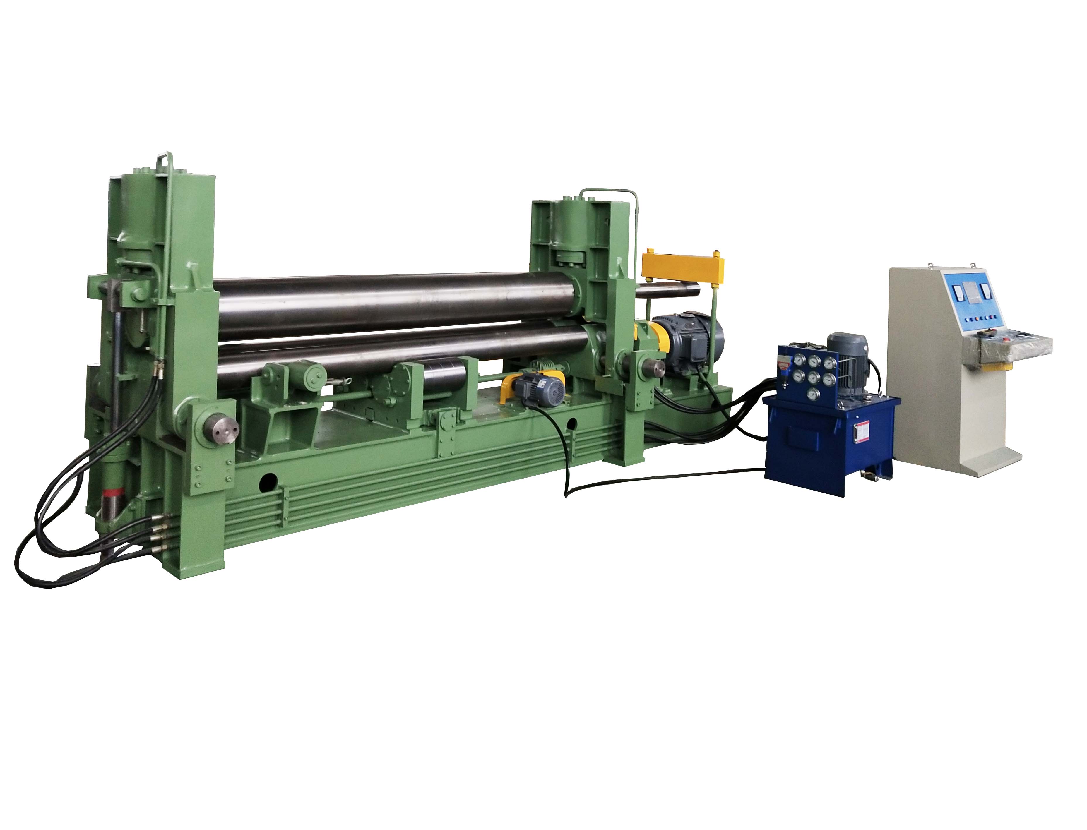 W11SNC萬能式三輥卷板機是一種雙夾板彎板機。 上輥為液壓驅(qū)動。 上輥可水平和垂直調(diào)節(jié),兩個下輥是固定的。 所有合金鋼輥均經(jīng)過感應(yīng)淬火和熱處理。 經(jīng)過感應(yīng)淬火處理后,所有的輥都將被研磨和拋光。