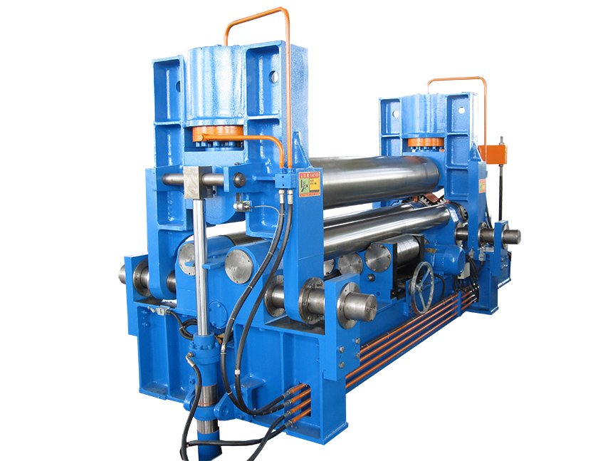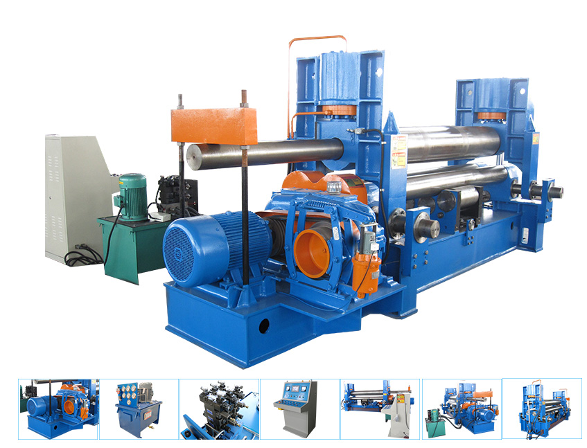 W11SNC萬能式三輥卷板機是一種雙夾板彎板機。 上輥為液壓驅(qū)動。 上輥可水平和垂直調(diào)節(jié),兩個下輥是固定的。 所有合金鋼輥均經(jīng)過感應(yīng)淬火和熱處理。 經(jīng)過感應(yīng)淬火處理后,所有的輥都將被研磨和拋光。
