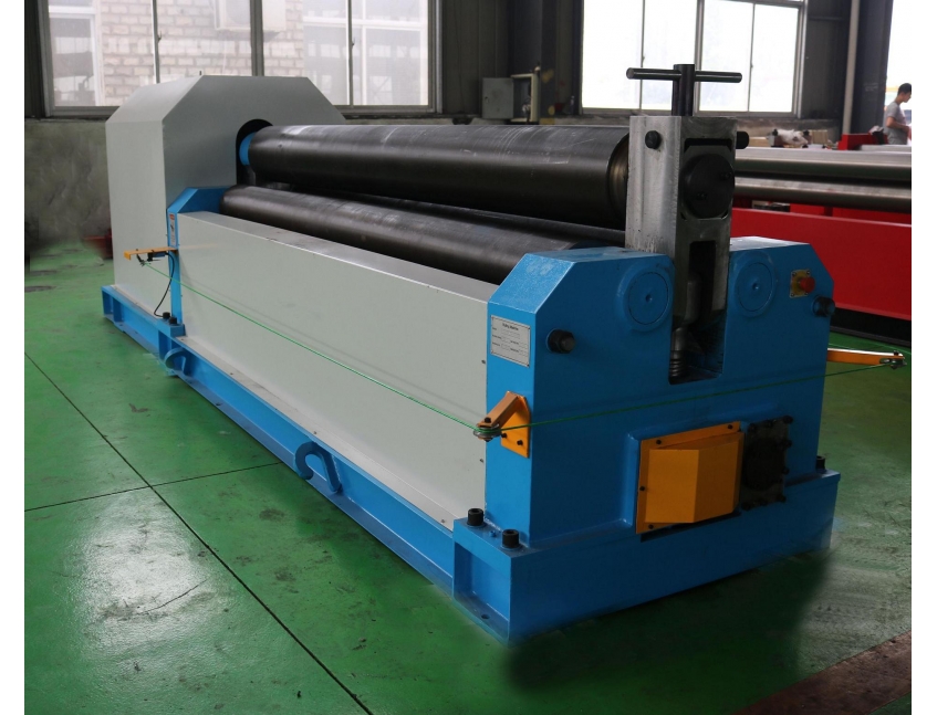 W11對稱彎板機(jī)是全機(jī)械式三彎板機(jī)。 三個滾筒全部固定,像金字塔一樣放置。